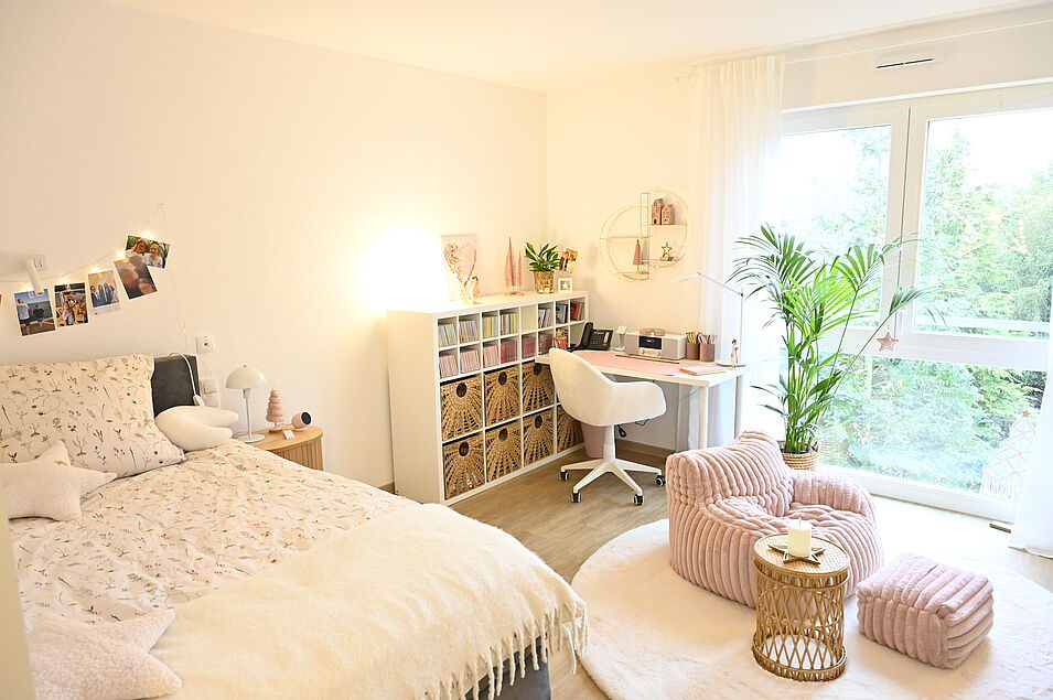 Zusätzlich erforderliche bedürfnisspezifische Ausstattungsmerkmale orientieren sich am individuellen Bedarf der Bewohner*innen. So ist im Raumkonzept berücksichtigt, dass beispielsweise durch das Älterwerden eine Veränderung der notwendigen Hilfemaßnahmen eintreten kann und hierdurch kein Umzug notwendig wird.